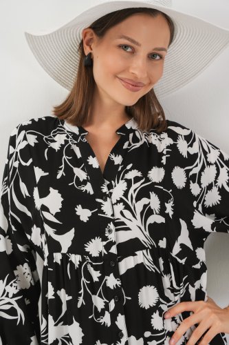 • Desenli Uzun Tesettür Elbise 2585 Siyah Beyaz 1
