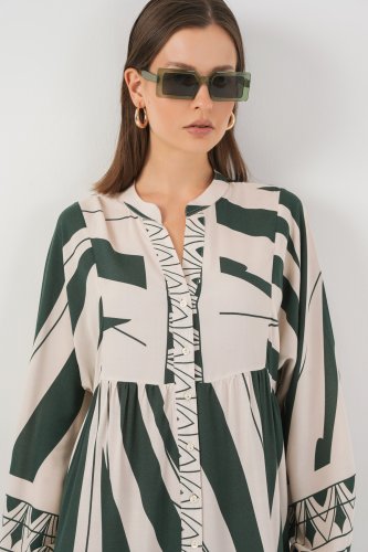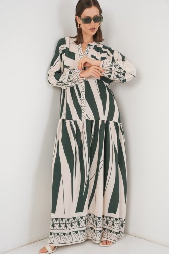 • Desenli Uzun Tesettür Elbise 2585 A Zümrüt Yeşili